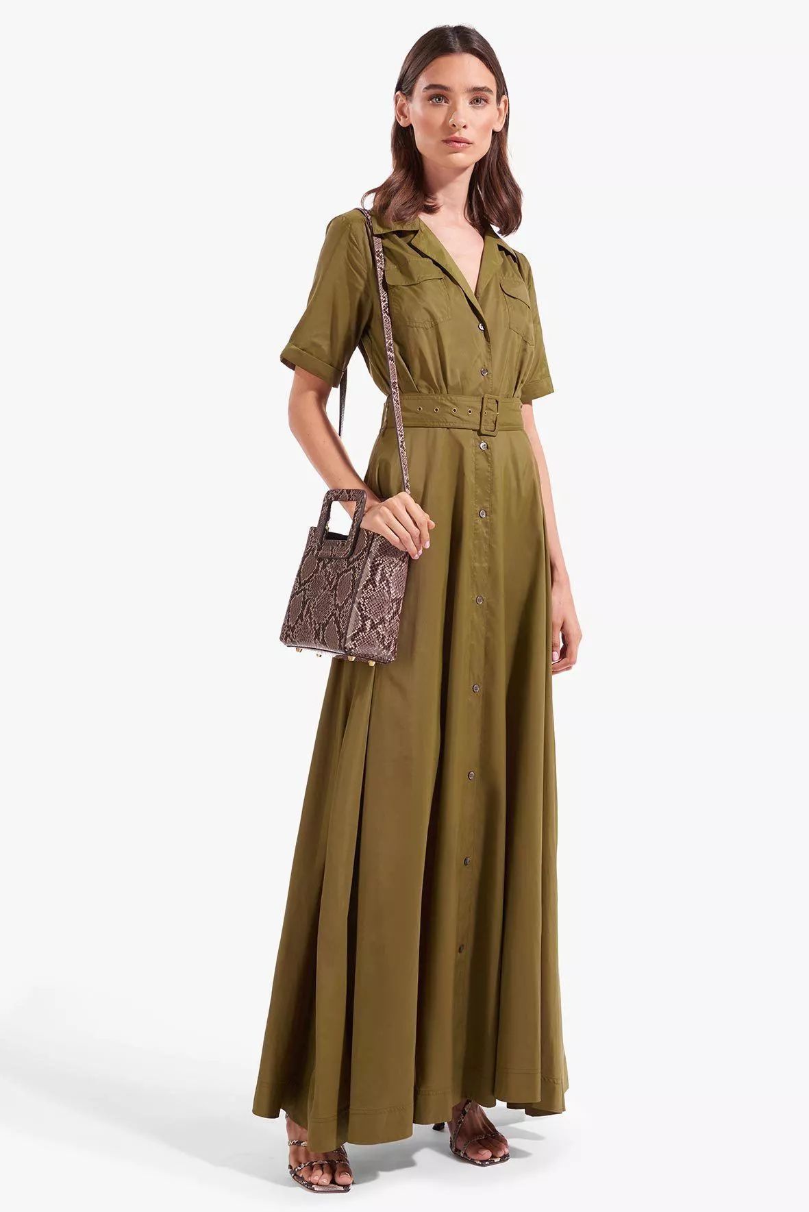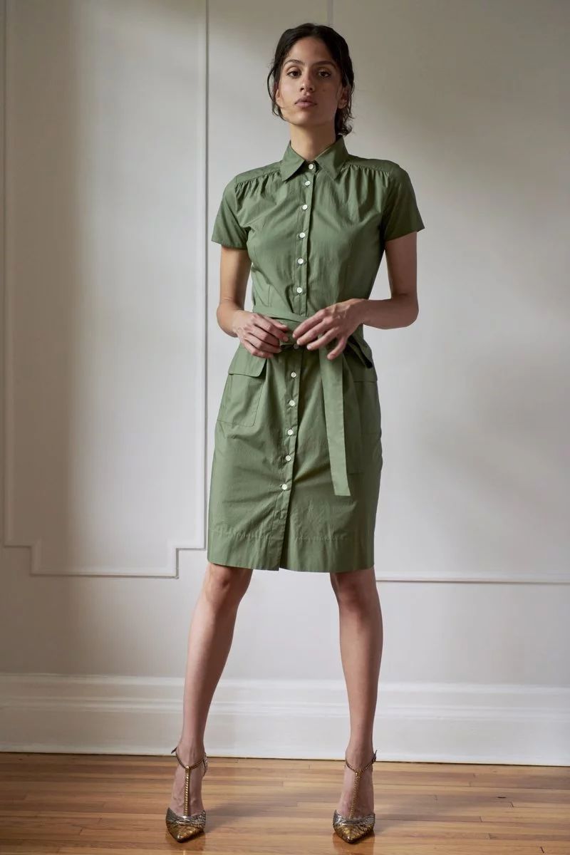 军绿色衬衫裙来自Room 502,穿上既显腰身又干练,价格约3200元,已经算是最近穿的比较贵的单品了。