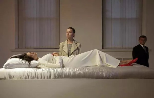 不仅如此,“躺”也可以躺出艺术。1995年,英国女演员蒂尔达·斯温顿(Tilda Swinton)邀请英国艺术家科妮莉亚·帕克(Cornelia Parker)共同完成了行为艺术作品《The Maybe》。蒂尔达将自己关在一个玻璃长柜中,平躺着长达八个小时。人们围着参观、拍照,蒂尔达本人成为了一件展品。
