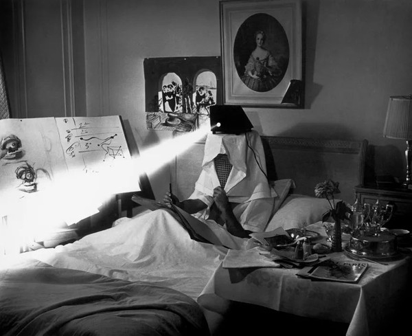 你以为只有你起不来工作?其实艺术大师们也是!对他们来说,有时候,躺着更能够激发灵感。摄影师Philippe Halsman就曾在1964年拍下一幅照片,超现实主义大师达利躺在纽约的宾馆床上,在脏乱的纸上“刺激他的灵感”。