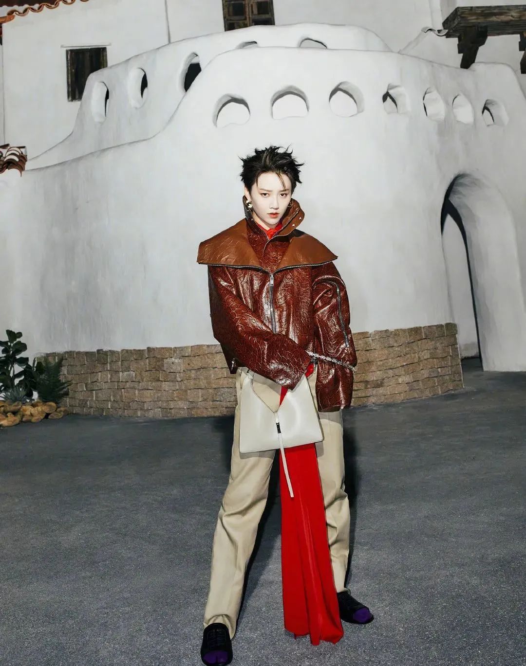 之前和孟美岐一起在机场LOOK现身过,她背的是焦糖色,实用与美貌一个都不少。