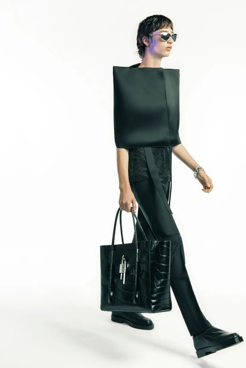 不难看出Givenchy这季TOTE BAG最核心的元素就是抢眼又酷炫的金属配件,除了链条,非常醒目的还有著名巴黎金属情人锁,放在皮革包上极具辨识度,集装饰性与功能性于一体,不得不说MM.W这次还真是玩high了金属锁头。