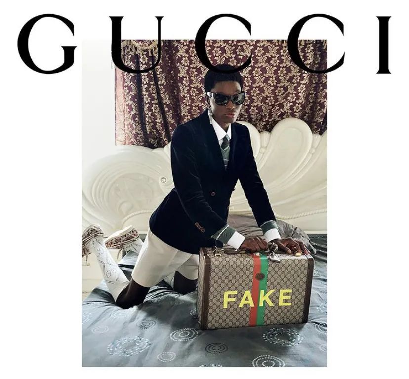 “GUCCI FAKE NOT”全新系列的灵感来自于20世纪80年代初的流行标识并逐渐成为街头潮流的时尚语言,在经典款TOTE BAG的基础上加入了诙谐幽默的恶搞单词,辨识度极强。