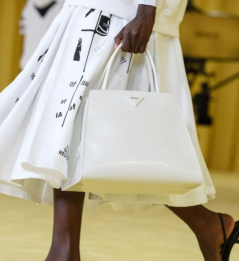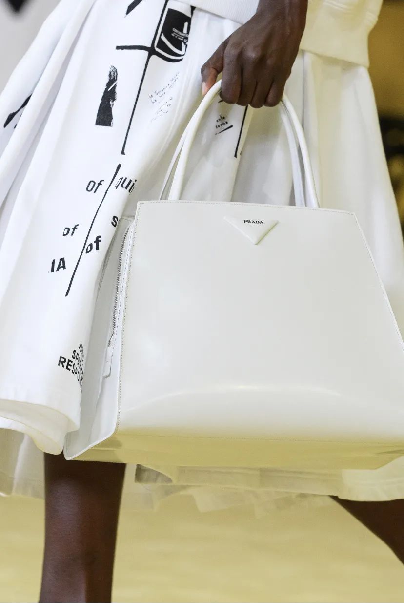 欣赏创意满分的成衣同时,芭姐在秀场上也捕捉到了Prada秀场新鲜热乎的TOTE BAG。
