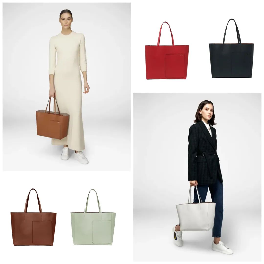 与Shopping Tote相似的还有Soft Tote手袋,全包都是柔软的皮革触感,有薄荷绿、珊瑚红、柔雾灰、焦糖橘,五彩缤纷的颜色都可解锁,职场小姐姐的心头好。