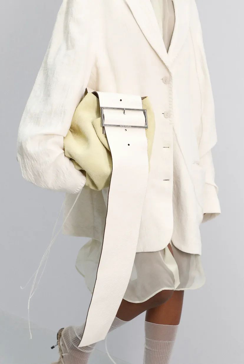 再看看Acne Studios与艺术家Lydia Blakeley合作推出的特别系列,这款TOTE BAG的灵感是从日本传统和服腰带中汲取的,两侧有扭花结饰,整体松松垮垮却不失美感。