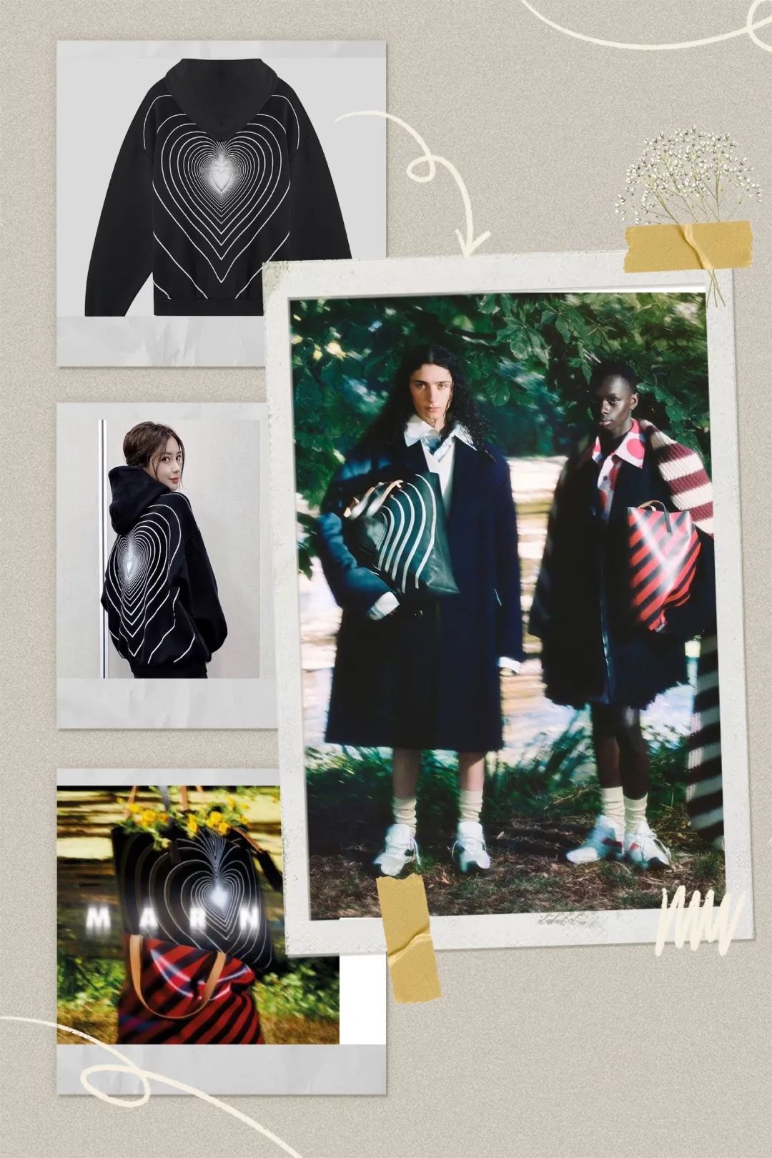 2020秋冬系列推出的TOTE BAG主打文艺有趣的迷离梦幻,线条纹路充斥着整个包身,把在Marni卫衣上的爱心元素也传递到了包袋上,整了个爱心休闲一条龙服务。