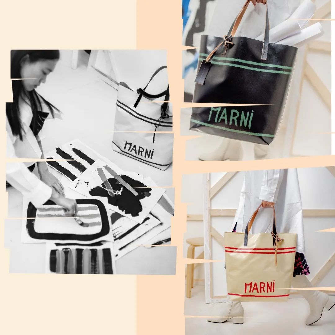 最近Marni还推出了双十一限量手袋,Marni Tote直接把购物袋摇身变成了艺术画布,醒目的涂鸦标记是主角,实用的大空间更不用说了,采用聚氯乙烯及皮革制作的材质,蛮特别的。