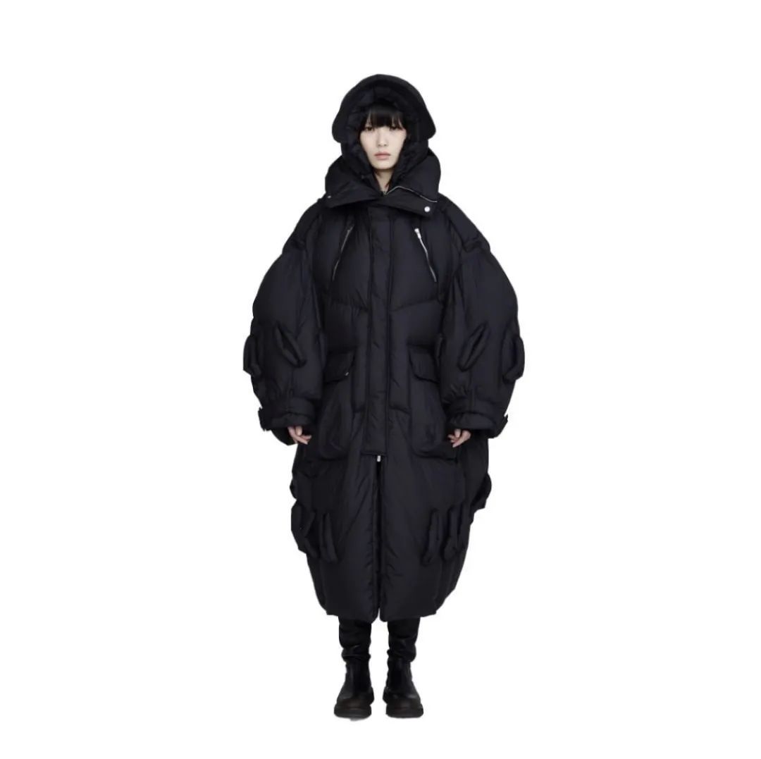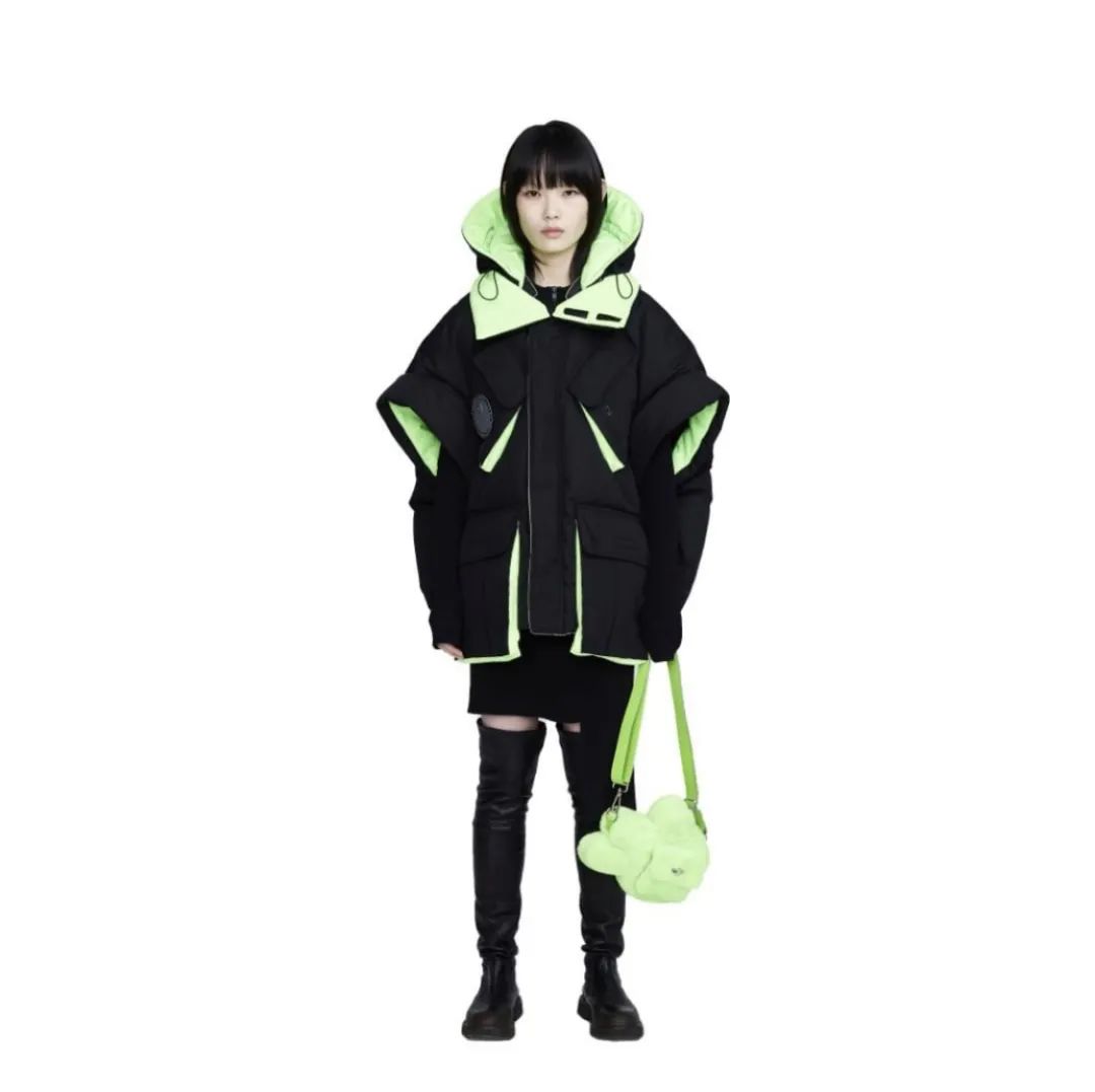 这款设计更加独特和怪诞,三处伸向不同方向的袖口设计不仅可以同时解锁多种穿法,更是让原本呆板无趣的羽绒服变得时髦得不行。