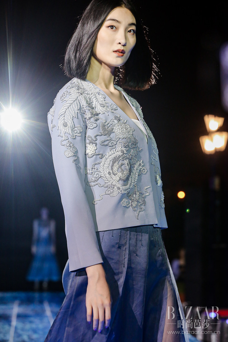 第三部分“锦绣华裳”以粉色系、红色系、蓝色系的变化,表达了一百周年的时光如同人生历程的变化:粉色轻纱是年少的轻盈烂漫、红色丝绸是青春的美丽端庄、蓝色锦缎是成熟的雍容大气。