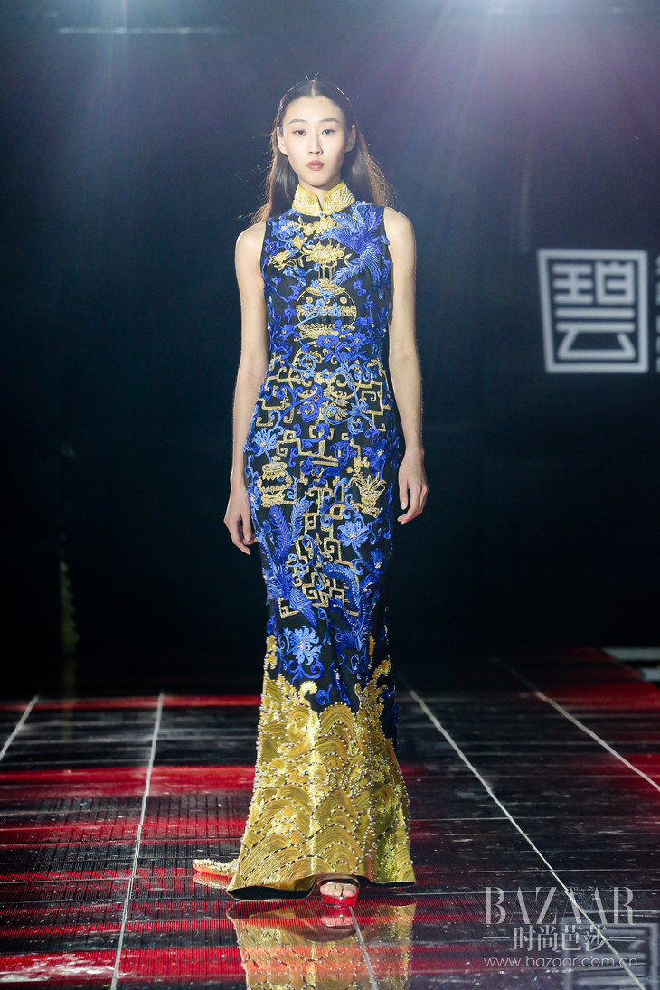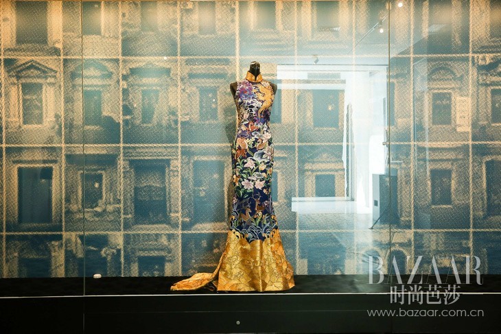 金桥馆内,陈列“凤凰翎羽”褂裙、“紫醉金迷”旗袍和“繁华锦瑞”礼服多件作品;宝山馆内,陈列“金玉玲珑”盘金绣长袍,以顶级手工艺让经典传统服饰再创新生,使我们有幸在今日依然感受到海派技艺的精妙传承。