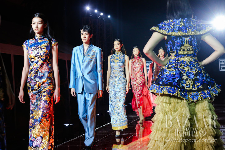 本次发布会除了女士旗袍、礼服和套装,增添了男士礼服和儿童礼服,呈现出现代中式服装的多样化与全面性。