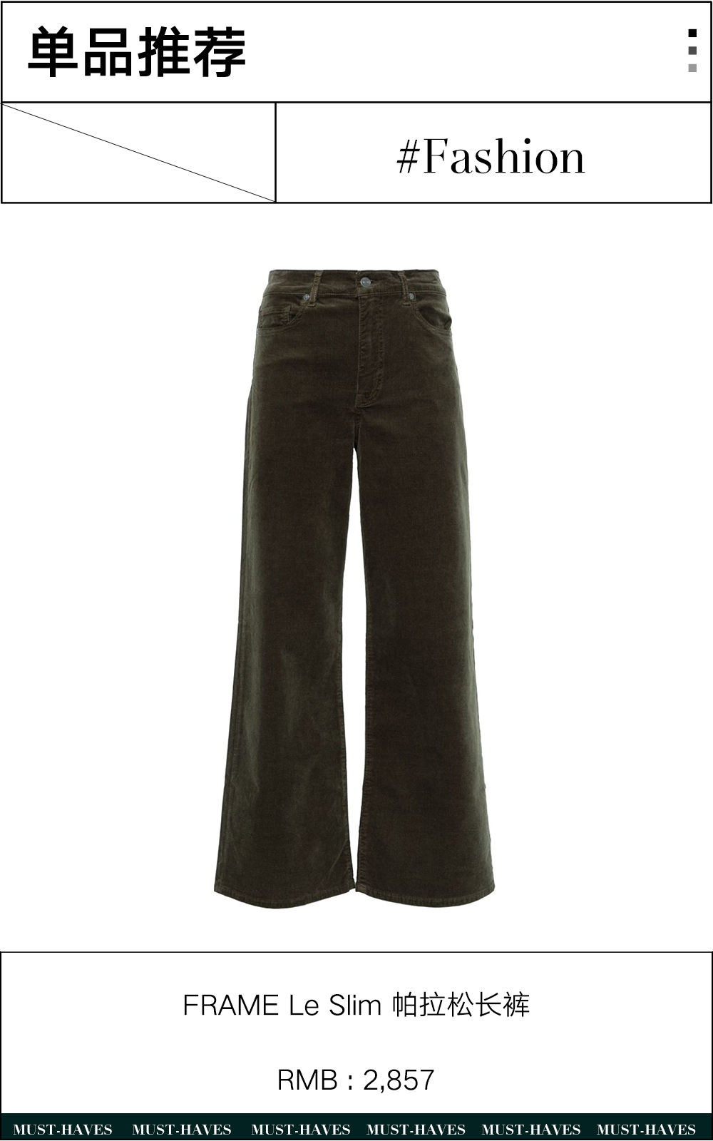 设计上也不需要太过“花样百出”,简单百搭的色调结合流畅利落的线条,至多在腰部来几个褶皱,对于小个子身材相对更加友好。在不断更迭的时装历史中,阔腿裤也曾被认为不够凸显女性魅力,也曾在流行趋势的不断变化中“失去光环”。但在注重自我体验的当下,它所带来的舒展时髦,恰恰也给我们带来了一份从容。最近“不讨好感”的概念再次被讨论,阔腿裤也是一件不用为了讨好完美身材而存在的单品。不为了讨好而内耗,穿搭如此,生活也是如此——选择让你舒适的、喜爱的,并尽情享受大步朝前走的痛快。这里有一些阔腿裤的单品推荐👖: