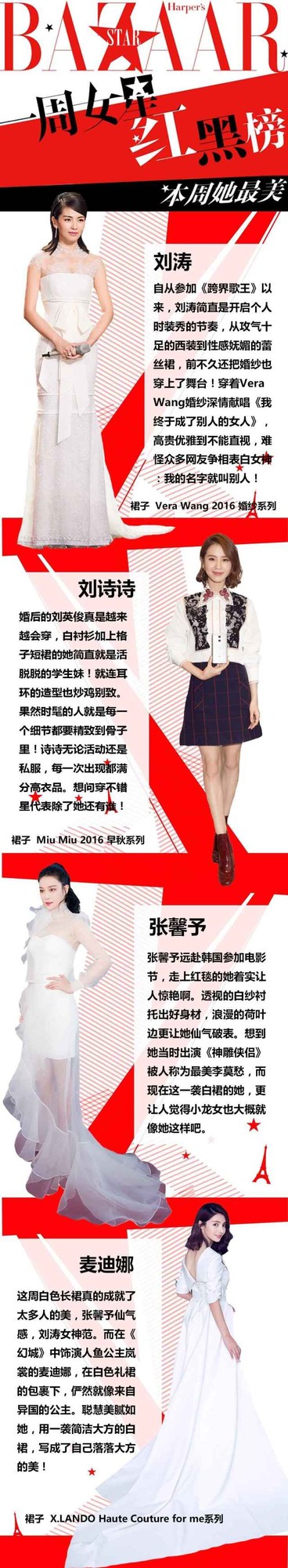 一周女星穿衣红黑榜,李冰冰一身蕾丝礼服完美演绎了娇嫩黄裙正青春,Gaga秀内裤领奖走红...