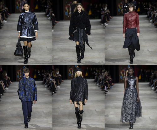 本季是SHIATZY CHEN 夏姿・陈第三十四次在巴黎时装周发布作品。每一季作品,SHIATZY CHEN 夏姿・陈都会以国际视野融合当代美学,向世界展现中国传统文化的魅力。走进秀场,数面巨型开版图腾刺绣垂帘引人注目,每一幅画面都在讲述苗族不同的神话故事,如蝴蝶妈妈、蝴蝶与凤凰的爱恋、白鹤仙子的祝福,青鸟的启示等,苗族作为迁徙民族,其服饰中的图腾最早可追溯到新石器时代,这些图腾绣片中蕴含着爱意、思念、纯洁或母性的力量、生命的起源,以及对自然力量的敬畏和祈福,仿若一部生动的文明史。