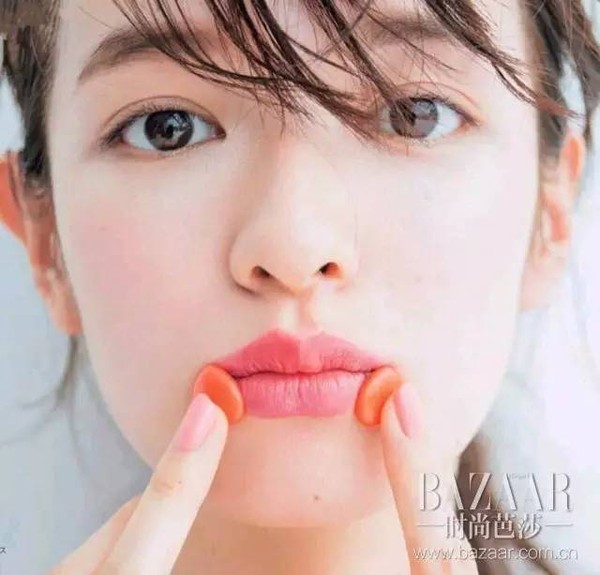 方法:选择一款颜色明亮的糖果色唇蜜,画上嘴巴的时候,稍微超过一点唇线,达到丰唇的效果。