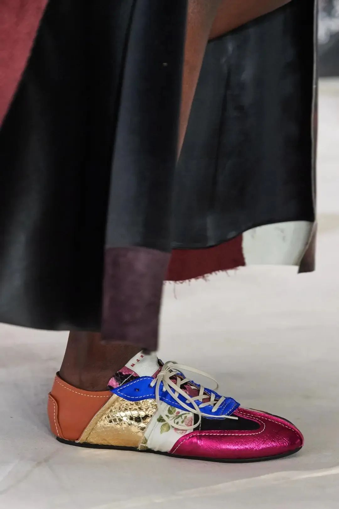 Marni 2020秋冬系列的复古运动鞋,轻薄的鞋身,流线型的鞋头,将舒适理念贯彻到底。
