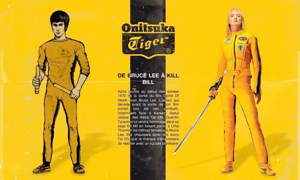 李小龙在遗作《死亡游戏》中身穿黄色连体服、脚踩Onitsuka Tiger的经典荧幕形象可谓是深入人心。
