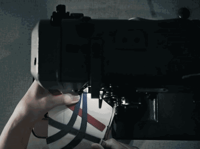鞋面材质由进口牛绒+小牛皮+风衣布拼接而成,十分考验工艺技术。