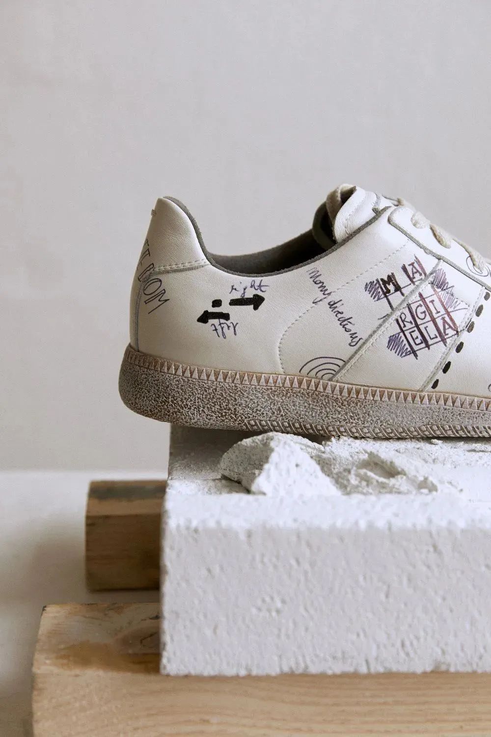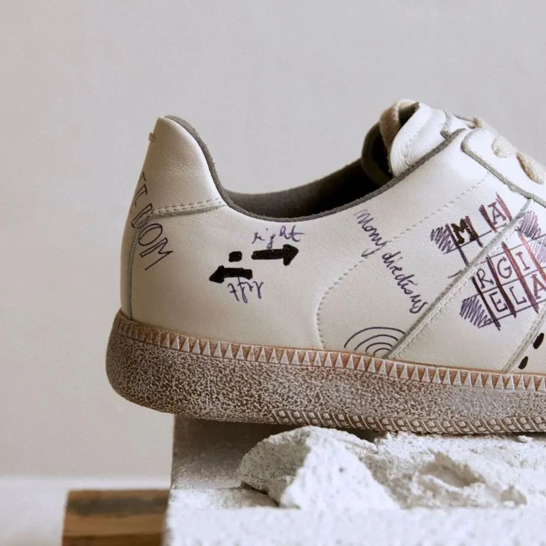 这双鞋是今年4月份奢侈品购物网站Mytheresa独家推出的Maison Margiela新品运动鞋,名为“ Vintage Graffiti”。