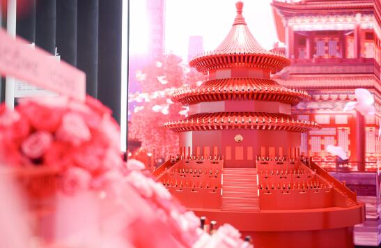 北京内廷满载爱意与美好,呈现一场幸福华美的视觉盛宴。漫步至兰蔻幸福世界的入口,立即感受到一瞬间的喜悦,难忘当下的欢愉。漫天飞舞的玫瑰娇艳欲滴,极致展现兰蔻的灵感源泉。左侧的巴黎埃菲尔铁塔由兰蔻第二代「小黑瓶」妆点而成,浪漫经典;右侧由兰蔻菁纯唇膏组成的北京天坛,热情洋溢。一左一右,联结北京与巴黎,呈现别致独特的法式风情,尽享当下之悦。