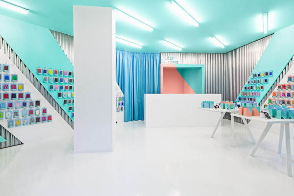 蓝绿色就像一位医生,浅橙色代表时尚达人,紫色则有点像“狂人”,Masquespacio 又一次以其一贯的跳跃色彩来诠释品牌形象。店面橱窗中写着“Doctor Manzana? 是医生?不,他们是一个专门解决智能手机和平板电脑故障的专业技术团队。”