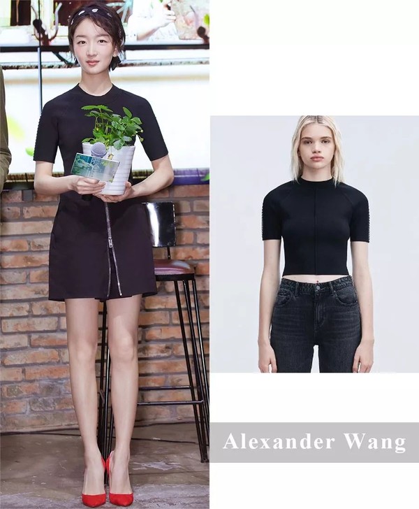 冬叔用alexander Wang 2018春夏系列搭配出了一身黑,同时用搭配正红色的heels,为造型增添亮点。