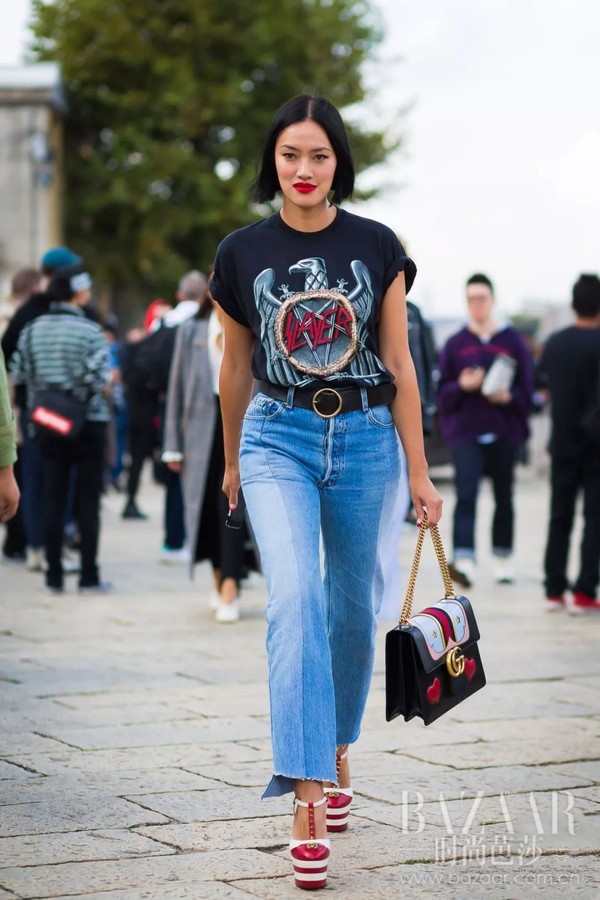 把T恤塞进裤子里,不只有拉长腿部的视觉效果,还会把重心向上挪,气场也随之提高。