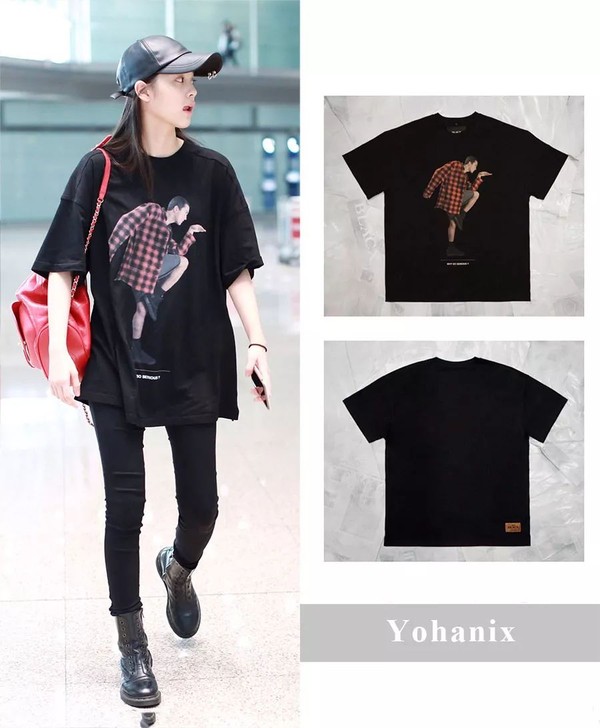 不管你是什么身材的女生,都可以在略宽松款黑色T恤中找到适合自己的款,因为可以将自己的身材完全隐藏在T恤之中。像宋茜这样搭配阔腿裤可以轻松穿出气场。
