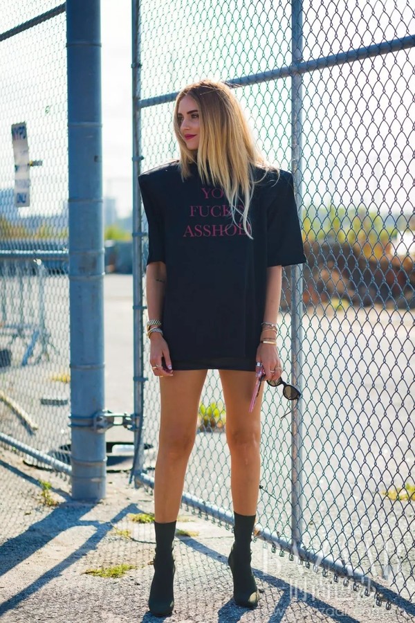 你还可以像宇博Chiara Ferragni一样,突出肩线、增宽肩部之后,你会发现对比得腿部更加修长纤细。