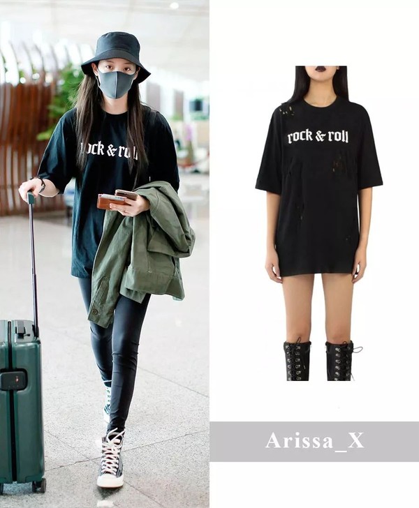 注意啦,敲黑板!这里有一款Oversize T恤,你可以完全将自己“装”进去,会无比遮肉哦~或者像欧阳娜娜这样搭配贴身裤也是OK的。