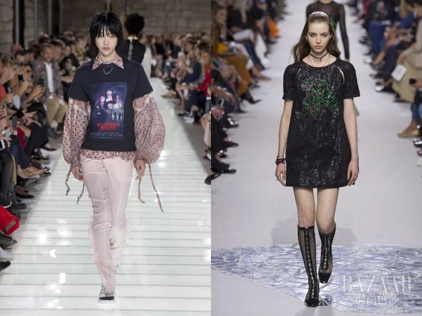 Louis Vuitton 2018春夏系列,用宽松的黑T和衬衫搭配在一起,而Christian Dior 用强烈的剪裁将黑T变得闪耀时髦。