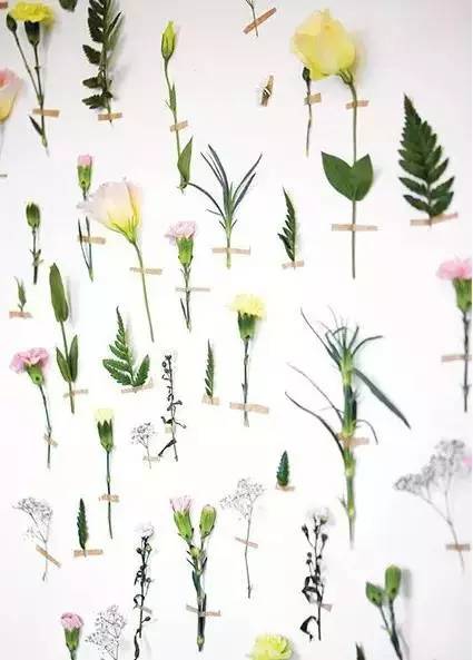 有了纸胶带以后你也可以选择把花黏在墙上,不够就是容易枯。黏多少就得拆多少。