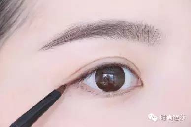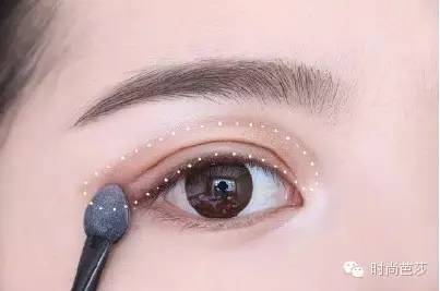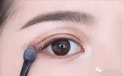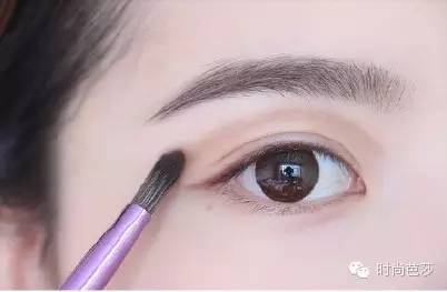 step2:用扁平的眼影刷蘸取无珠光阴影粉,画出双眼皮的引导线