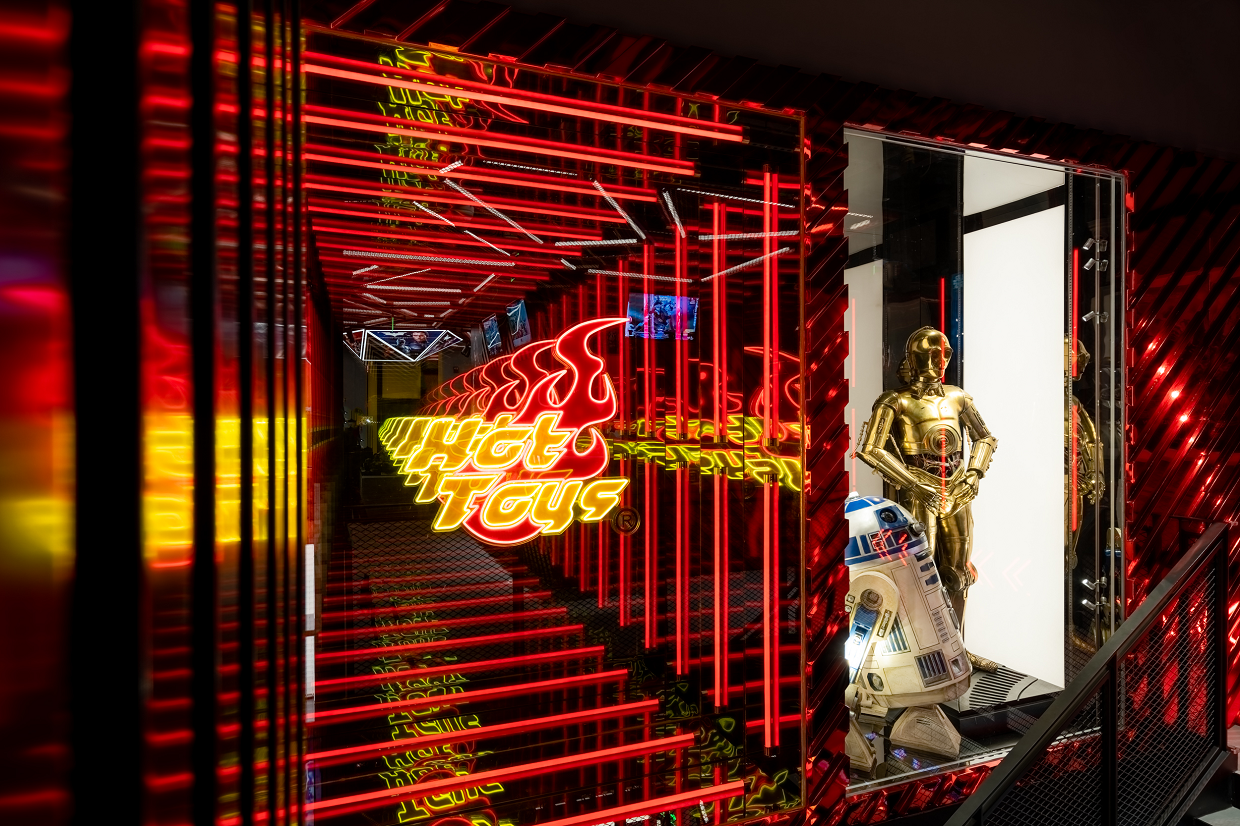 作为全新的上海旗舰店,Hot Toys通过精心设计,愿将线下零售与潮流打卡融为一体。透过店铺二楼的“Hot Toys Infinite Mirror”,酷炫的千层镜设计极具潮流属性,层层叠加的镜像视觉效果,吸引众多潮流爱好者前来打卡。