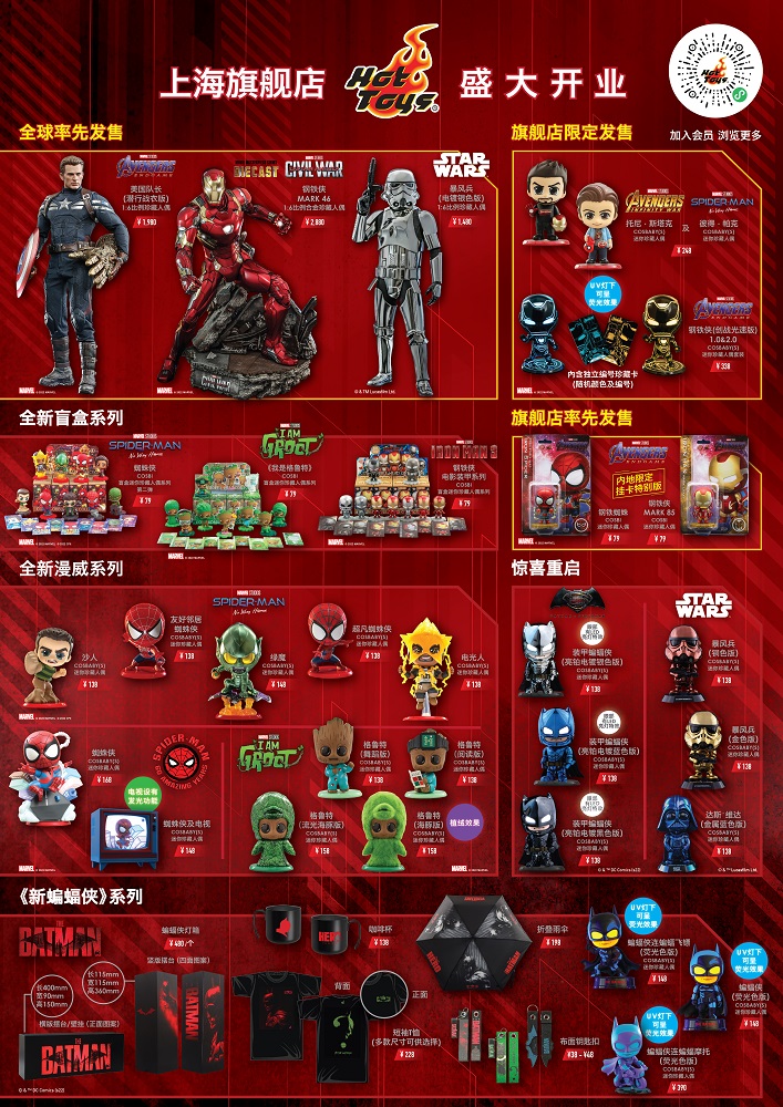 为庆祝全新Hot Toys上海旗舰店的试营业,线下门店发布三款1:6比例限定版珍藏人偶: