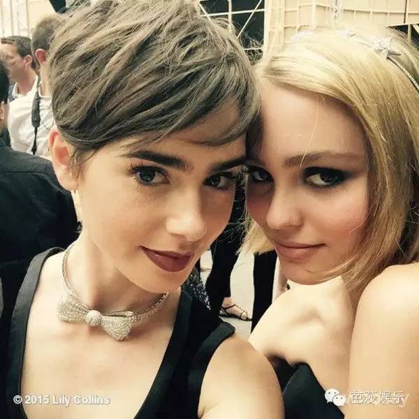 Lily穿着Karl问她量身定制的小黑裙,和Lily Colins挽着手玩的特别High!秀场就像自家的后院!