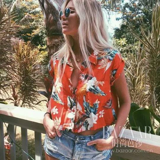 穿着夏威夷衬衫搭配牛仔裤去玩滑板的酷女孩,可真帅呢!