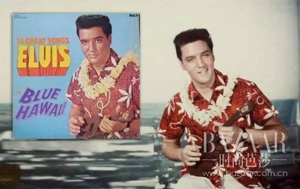 而50年代猫王Elvis Presley在专辑《蓝色夏威夷》的封面上穿着一件红色夏威夷衬衫。