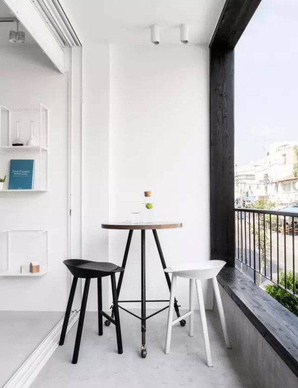 △ 长形尽头的阳台设置了吧凳,可以在闲暇时光俯瞰城市的繁华