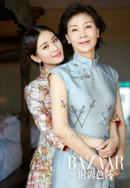 没错吧,诗诗妈妈在一袭淡蓝色旗袍下显得星妈范儿十足!皮肤紧致透白,而且关键是,和诗诗一样瘦!