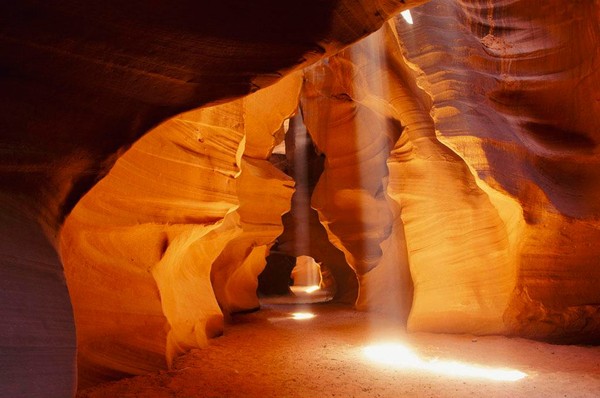妩媚的线条,让人感到梦幻眩晕的光线,这不是两幅绘画作品,而是位于美国亚利桑那州佩奇城附近的羚羊峡谷。这里美得被当地人和游客称为“地下天堂”,不过如果暴雨来临,也可能变成“地狱”哦~ 男神詹姆斯弗兰克主演的电影《127小时》就取材自在这里发生的探险者被困的真实事件。