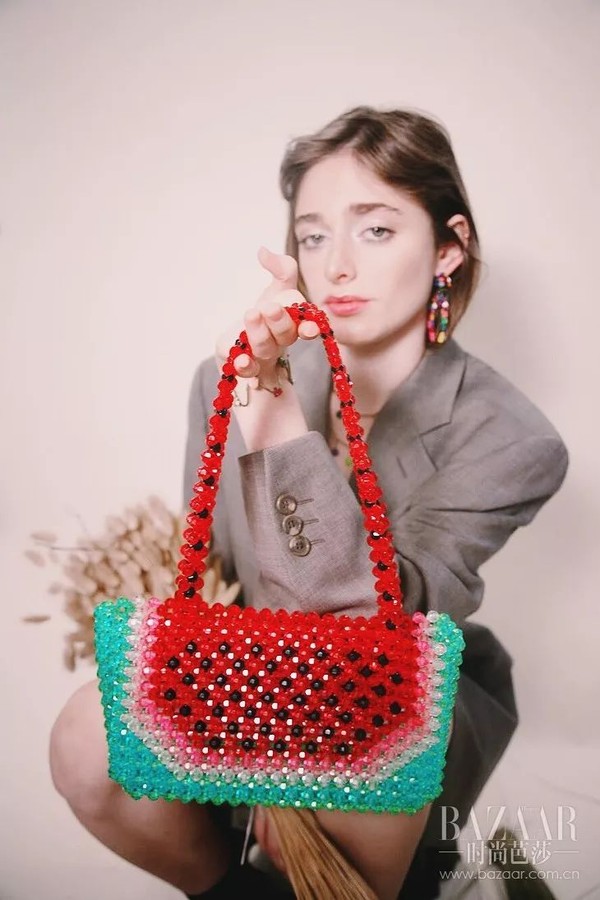 还有这款Susan Alexandra的“鼻祖”串珠包——“西瓜包”,更是浓墨重彩到不行~ 把整块西瓜的纹路都copy到包包上,芭姐还是头一次见!炎炎夏日,看着这款“西瓜包”,好像瞬间就凉快了!