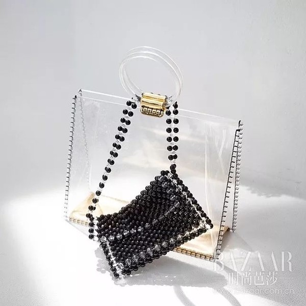 LOÉIL也迎合了本季对“透明感”的热捧,推出了透明色串珠包,要比黑色来得更梦幻!
