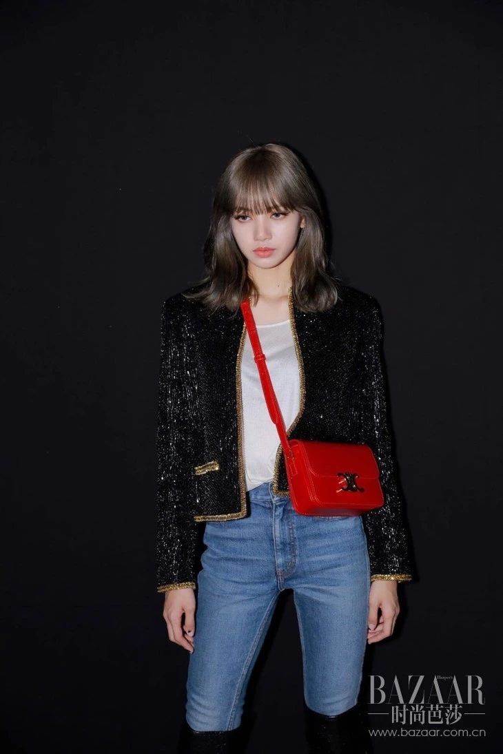 这股子率性也让她直接受邀参加品牌新季发布大秀,看秀当天Lisa身背鲜红色TRIOMPHE BAG,身穿CELINE 2019秋冬女装系列黑色夹克外套,展现出独特的帅气与型格。