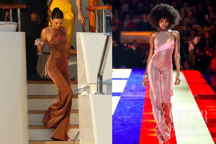 当她和闺蜜Bella Haddid在摩纳哥乘游艇出海时,她选择的一身Tommy Hilfiger和Zendaya合作系列连体裤,在阳光下闪闪发光刷遍社交网络。