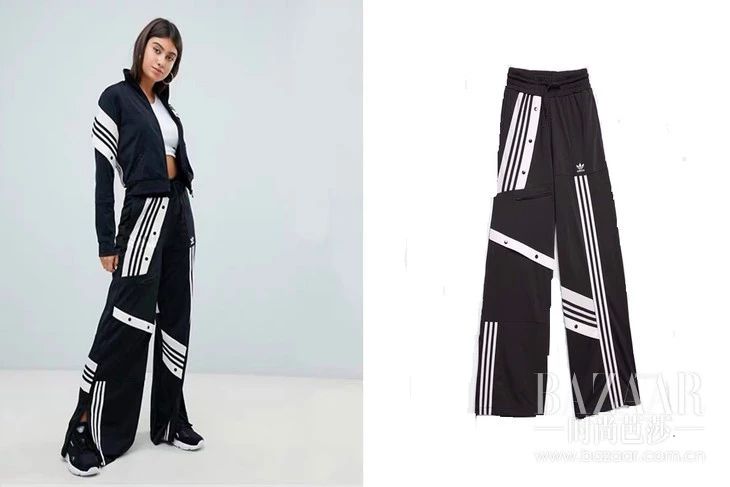 条纹阔腿运动裤