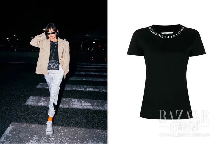 即使是裙装,辛芷蕾的穿搭也对普通女孩子有很强的借鉴性。一件亮片包臀裙就能将基本款的字母T恤搭搭配出玩酷的味道,但细带凉鞋里的粉色薄纱短袜和水钻耳坠,又恰恰点缀出女孩气的一面。