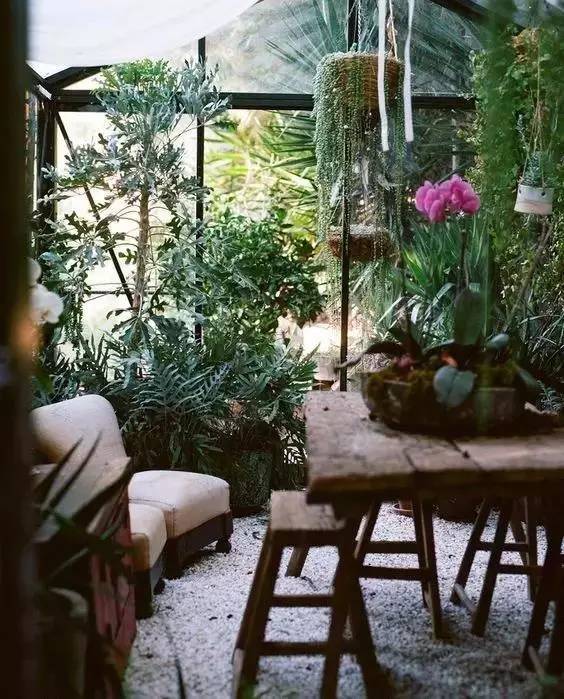 古代欧式的玻璃花房里,常常伴有下午茶聚会,有钢琴,有喷泉,情调满满。