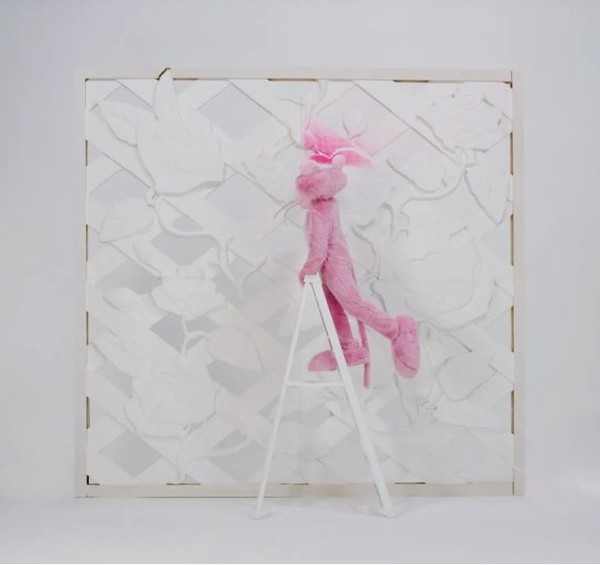 Alex的《橡胶铅笔恶魔》创作灵感源于大量图像和文化素材,非常的“美式波普”,他自己以及他请来的亲戚们一起扮演美国动画家喻户晓的人物,比如辛普森、粉红豹、白雪公主、西尔维斯特猫等,制造了一个耐人寻味的梦幻时空。