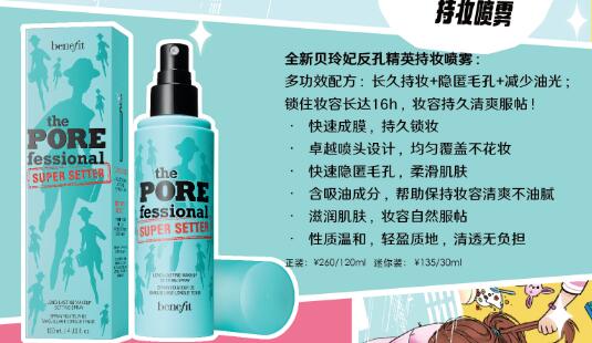 ​4月15日,贝玲妃反孔精英持妆喷雾重磅袭,让你的妆容牢固持久、清爽抗油!